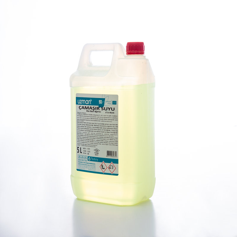 Uzman Çamaşır Suyu klor bazlı ağartıcı, 5 litrelik ergonomik saplı bidon ambalajında ailelerin ve işletmelerin uzun süreli kullanımı için tasarlanmış profesyonel hijyen ürünüdür. Güçlü klor bazlı formülü sayesinde beyaz çamaşırları bembeyaz yapar, sararmış kumaşları yeniler ve inatçı lekeleri etkili şekilde çıkarır. %99,9 oranında bakteri, virüs ve mantarlara karşı etkilidir. Çamaşır yıkamada, mutfak, banyo, tuvalet temizliğinde, yüzey dezenfeksiyonunda ve su arıtımında kullanılabilir. Özellikle hastaneler, oteller, restoranlar, okullar ve toplu yaşam alanlarında hijyen standartlarını en üst düzeyde tutmak için idealdir. Konsantre formülü sayesinde ekonomik kullanım sağlar. Pratik taşıma sapı ile döküm ve dozajlama kolaylığı sunar. Kullanım öncesi su ile seyreltilerek uygulama yapılmalıdır. Renkli kumaşlarda renk solmasına neden olabileceğinden yalnızca beyaz çamaşırlarda ve renk tutmayan yüzeylerde kullanılmalıdır.