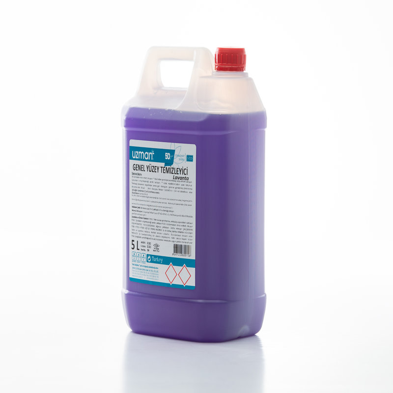 Uzman Genel Yüzey Temizleyici Lavanta, 5 litrelik ergonomik saplı bidon ambalajında ev ve işyerlerinin genel temizliği için özel olarak formüle edilmiş çok amaçlı temizlik ürünüdür. Doğal lavanta özlü formülü sayesinde temizlik sırasında rahatlatıcı ve ferah bir koku yayar. Zemin, fayans, laminat, ahşap, plastik, cam, masa, tezgah, dolap kapakları ve tüm sert yüzeylerde kullanılabilir. Yağ, kir, toz ve günlük kirlilik türlerine karşı etkili temizlik sağlar. Yüzeylerde leke veya iz bırakmadan temizlik yapar. pH dengeli formülü sayesinde yüzeylere zarar vermez ve renk solmasına neden olmaz. Ev, ofis, okul, mağaza, kafe ve tüm ticari alanlarda günlük temizlik için idealdir. Konsantre formülü su ile seyreltilerek veya direkt olarak uygulanabilir. Pratik taşıma sapı ile kolay döküm ve dozajlama imkanı sunar. 5 litrelik hacmi ile ortalama bir evin 1-2 aylık temizlik ihtiyacını karşılar. Doğal lavanta esansı içeren özel formülasyonu sayesinde kimyasal koku bırakmaz, uzun süreli ferahlık hissi sağlar.