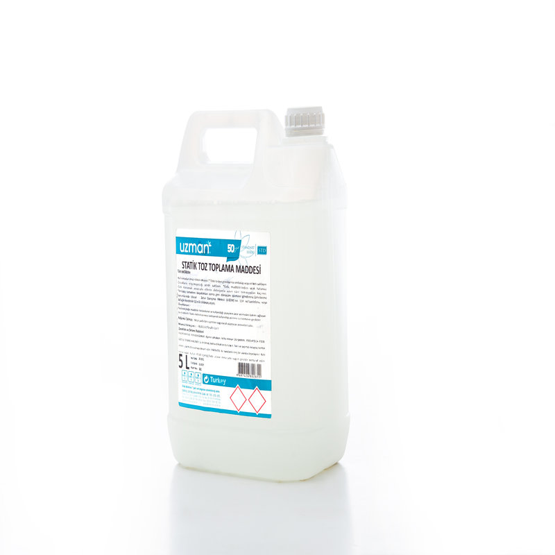 Uzman Statik Toz Toplama Maddesi, elektrikli süpürgelerinde ve otomatik temizlik sistemlerinde kullanılan toz tutma sıvısıdır. 5 litre bidon içinde sunulur. Toz ve tozun hava bozulmadan ele alınmasını sağlayan kimyasal formülasyona sahiptir. Elektrik süpürgesi filtrelerini korur ve toz kaçışını engeller. Temizlik cihazlarının verimini artırır. Tozun yükselmesini engellediği için astım ve alerji riski azaltır. Asansörlerde ve ticari temizlik alanlarında kullanılır. Depo ve fabrika temizliklerinde etkilidir. Zemin ve hava kalitesi standardına uygun bileşenlerden oluşur. Fırında kurutma işlemlerinde toz oluşumunu azaltmak için de kullanılabilir. İç mekan hava kalitesini iyileştirir. Uzun süreli depolanabilir. Ekonomik kullanım için 5 litre bidon tercih edilmiştir.